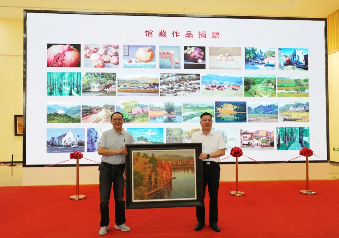 为感谢肇庆美术馆对本次展览的大力支持,艺术家薛国庆捐赠42幅油画佳作给肇庆美术馆收藏。同时,为表彰他为美术学院做出的卓越贡献及对学生的教育之恩,各届学生代表分别带来鲜花敬献薛国庆老师。