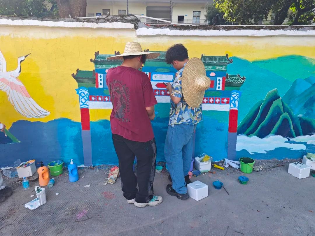 走进石牌社区,处处洋溢着乡村文明新气象。经过连日来的绘制,青年大学生“百千万工程”突击队已经在石牌社区完成一幅近50米的墙绘,展示了社区周边文旅特色,并营造了校地共建助力“百千万工程”的浓厚氛围。