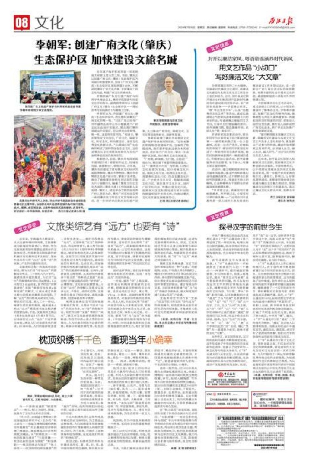 李朝军梳理了肇庆市非物质文化遗产保护传承利用的现状,“近年来肇庆积极推进创建保护区,也取得了积极成效,我们更希望通过承办本次座谈会,更好助力广府文化(肇庆)生态保护区创建,助力肇庆文旅名城建设。“广府源,岭南核,先行地,示范区!”他认为,肇庆接下来要明确创建重点,以“一廊两区十片区”为思路,以西江文化走廊为主线,划分府城文化片区、端砚文化片区、砚洲岛文化片区、高要春社文化片区、四会玉雕文化片区、广宁武术文化片区、悦城龙母诞文化片区、德庆儒学文化片区、封开广信文化片区、怀集壮瑶文化片区,按照各片区实际情况进行有针对性的修复和保护利用工作,为推动肇庆文化高质量发展赋能助力。