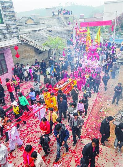 高要河台开耕节万人空巷。河台开耕节是国家级非遗项目高要春社的主要内容,当地群众和外地游客在镇内各村举行放炮、武术、醒狮、曲艺等活动,以各种传统形式喜闹春耕、庆贺丰年,祈求新的一年风调雨顺、如意吉祥。 西江日报记者梁小明 摄