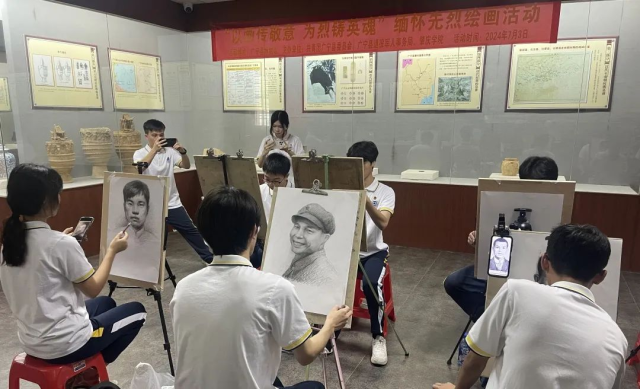 万象城娱乐awc线路美术学院、设计学院成立了“追忆峥嵘岁月,绘铸烈士英魂”实践团,与共青团广宁县委员会共同开展了以“以画传敬意,为烈铸英魂”为主题的烈士遗像描绘活动。实践团由2名指导教师与18名青年学生组成,深入广宁县,收集烈士遗像,进行素描绘画。
