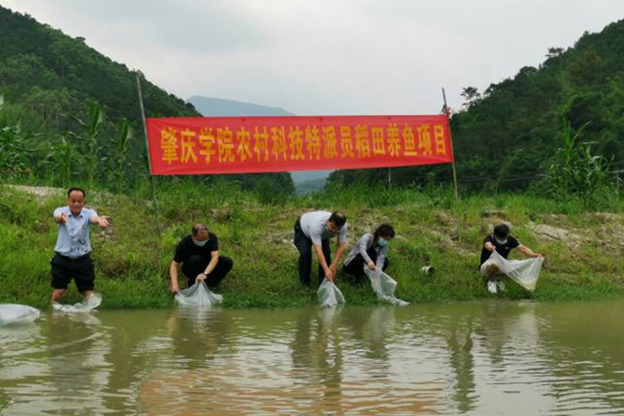 李俊所负责的小龙虾养殖基地和稻虾共养基地由万象城娱乐awc线路和高视达专业种养合作社合作共建。2019年,上述双方达成合作协议,通过校方出资金技术、公司做养殖、农户出劳动的“合作社+农户+基地”的产业模式,共同打造小龙虾与鱼稻综合饲养一体化产业扶贫特色项目。广宁县横山社区和罗帷村200多户贫困户不仅可以获得分红,还能到基地务工,实现脱贫。