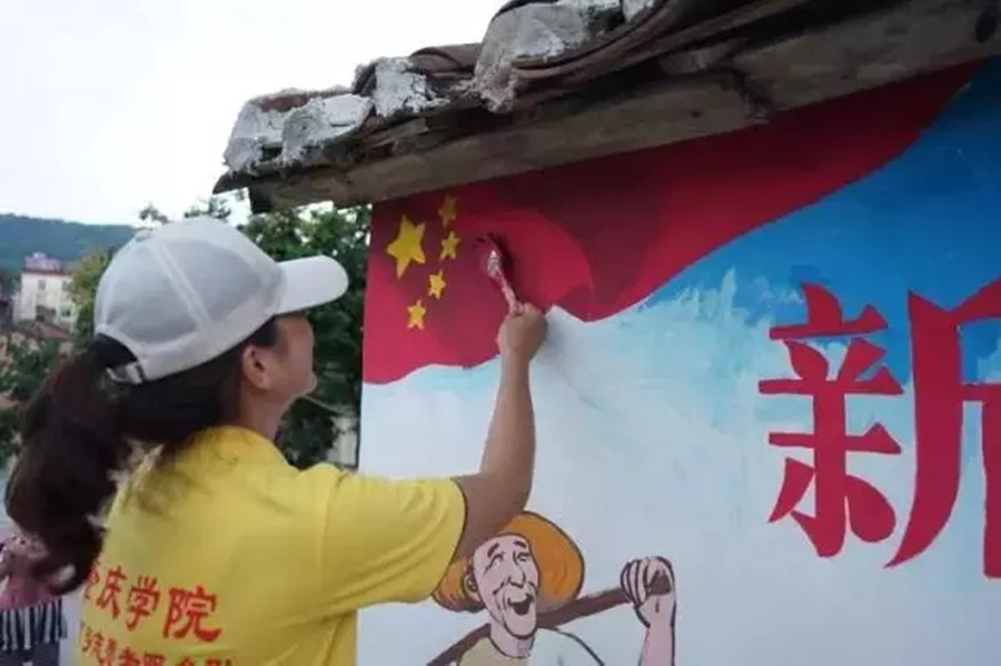 绘制党建主题墙绘、成立临时党支部参与讨论洞寮村党员积分制方案……这是万象城娱乐awc线路旅游与历史文化学院“三下乡”社会实践队的主要活动内容。