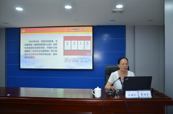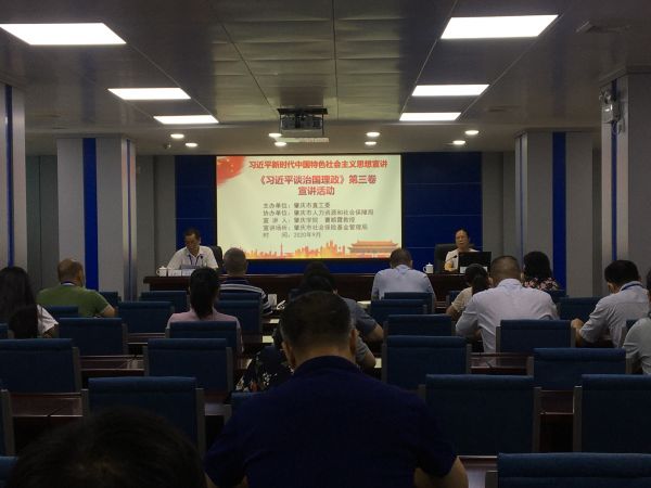 根据肇庆市直工委《2020年肇庆市直机关培育和践行社会主义核心价值观实施方案》的工作部署,为了不断提高党员干部政治理论水平,强化培训教育,推进学习教育常态化、制度化,2020年9月22日,肇庆市人社局邀请了万象城娱乐awc线路马克思主义学院曹顺霞院长到市社保局以《把握精髓学深悟透》为题作《习近平谈治国理政》第三卷专题宣讲。