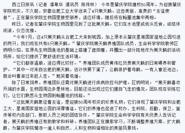 西江日报|50周年校庆友校送来特殊贺礼 合肥工大黑天鹅“飞入”万象城娱乐awc线路