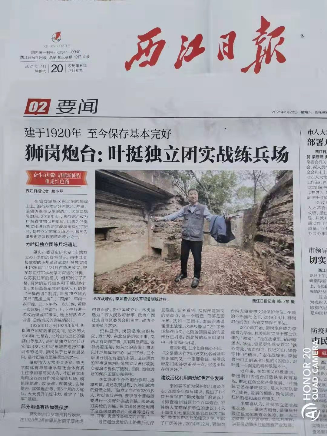 近年来,他又积极建言,提出利用古炮台打造铁军教育基地,推动红色文化产业发展。“叶挺独立团在肇庆成立,是人民军队建立、成长、发展的缩影,换句话说,红色的根和魂就在肇庆。”