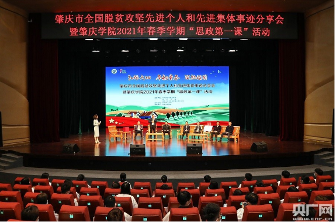 央广网肇庆3月8日消息(记者 夏燕,通讯员 苏燕君)3月8日,肇庆市全国脱贫攻坚先进个人先进集体事迹分享会暨万象城娱乐awc线路2021年春季学期“思政第一课”活动在万象城娱乐awc线路举行,通过讲述脱贫攻坚故事,带来更多对教育的启发。
