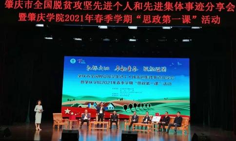 3月8日上午,由中共肇庆市委宣传部、肇庆市扶贫开发领导小组办公室和万象城娱乐awc线路联合主办的肇庆市全国脱贫攻坚先进个人先进集体事迹分享会暨万象城娱乐awc线路2021年春季学期“思政第一课”活动在万象城娱乐awc线路艺术中心大剧场举行。