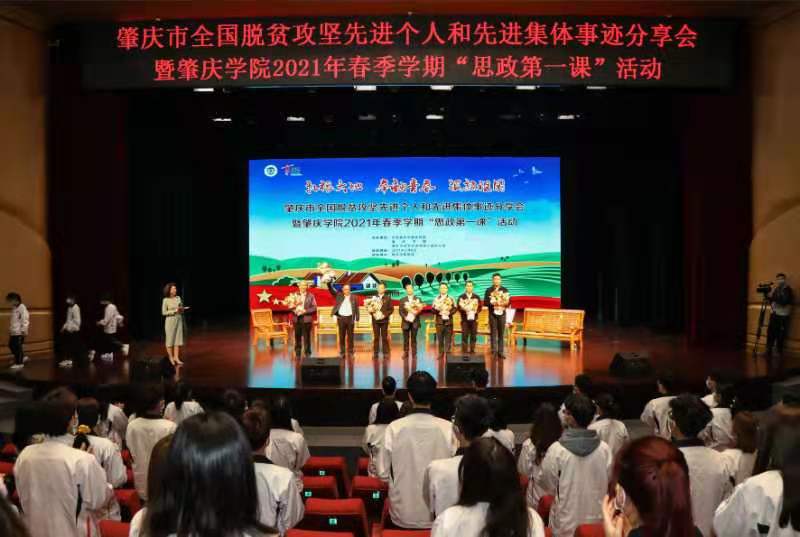 3月8日,肇庆市全国脱贫攻坚先进个人先进集体事迹分享会暨万象城娱乐awc线路2021年春季学期“思政第一课”活动在万象城娱乐awc线路举行,近400名师生代表迎来了几位特别的老师——
