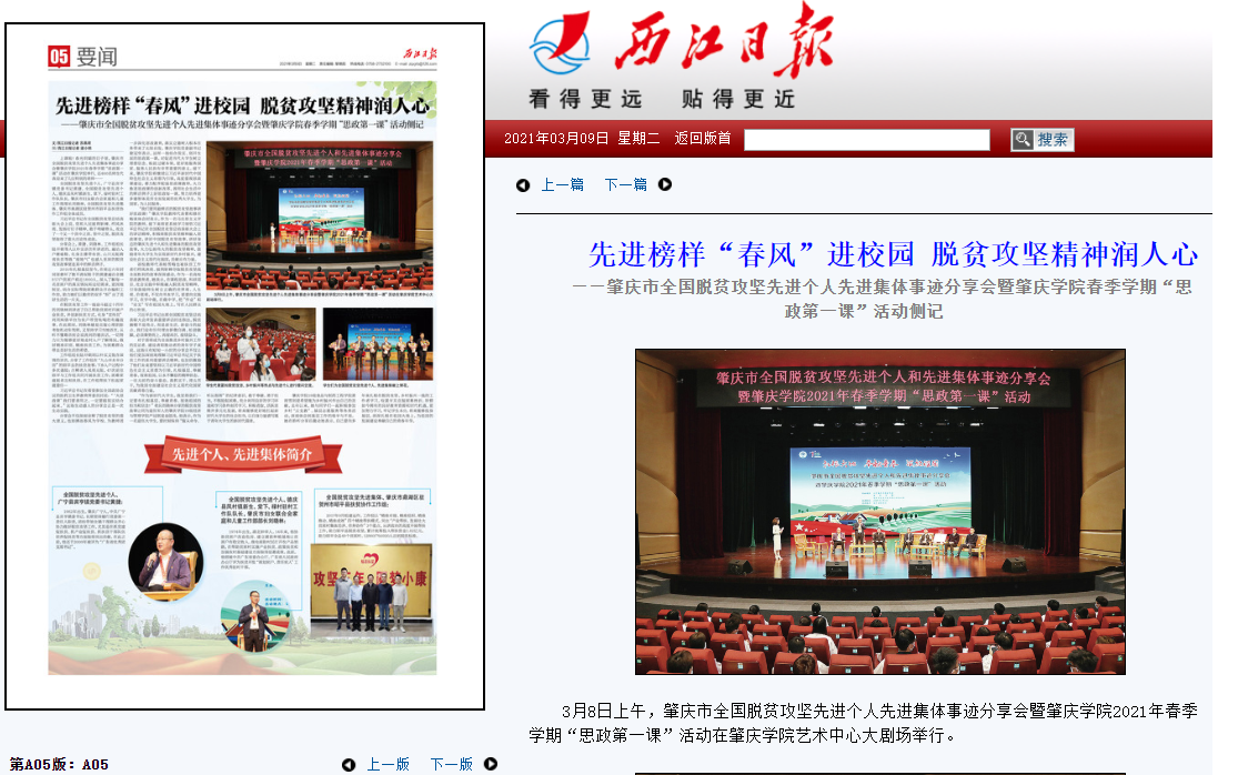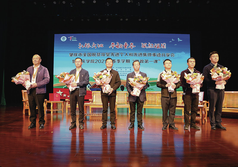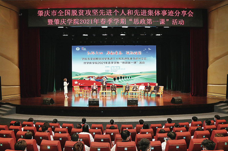 3月8日上午,肇庆市全国脱贫攻坚先进个人先进集体事迹分享会暨万象城娱乐awc线路2021年春季学期“思政第一课”活动在万象城娱乐awc线路艺术中心大剧场举行。