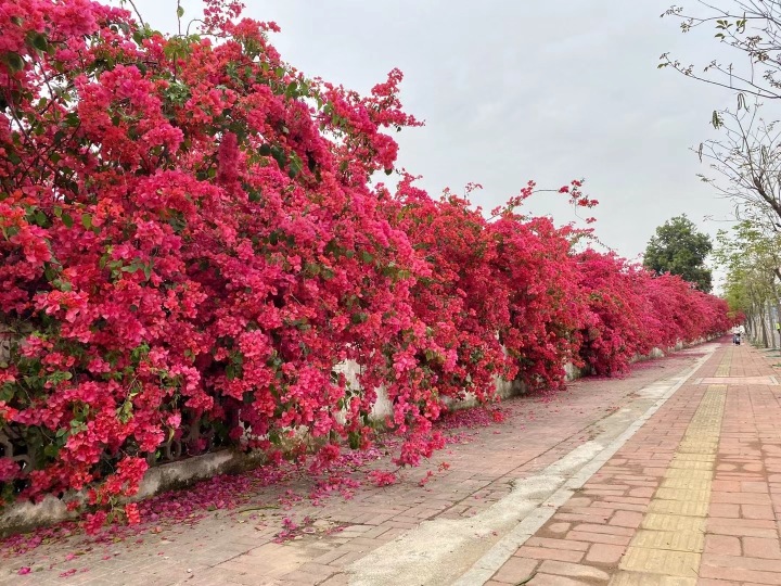 研究所所长吉前华博士告诉记者,三角梅会成为“所花”也是意料之外。刚开始栽种时只是在内墙生长,只有几根纤细的枝条,因为喜欢向阳,这些枝条沿着墙外攀爬、生长,现在的三角梅更是长势如虹,特别到春季花期,如同红色“瀑布”般。“我们的三角梅越来越受到市民关注,过来打卡,我们也非常欢迎。”