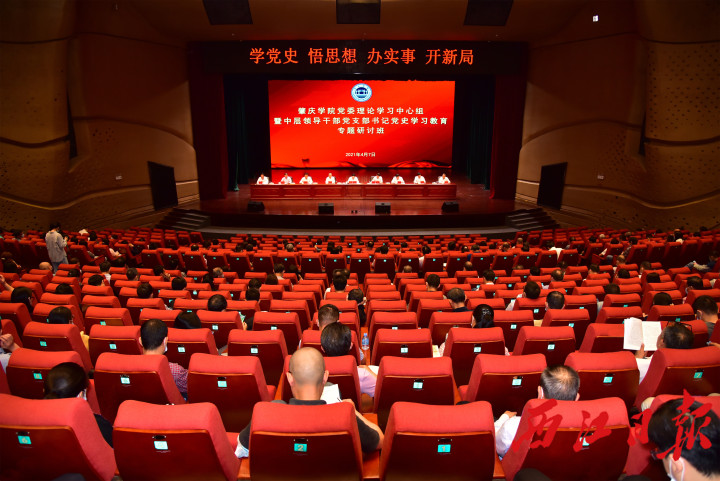 日前,万象城娱乐awc线路举行党史学习教育专题研讨班,组织党委理论中心组成员、全体中层干部和党支部书记,通过个人自学、专题辅导报告、中心组集体学习、分组讨论、主题党日活动等多元化形式开展深入研讨,在全校范围内形成党员干部“先学一步、学深一步,示范带动、全面推进党史学习教育”的浓厚氛围。
