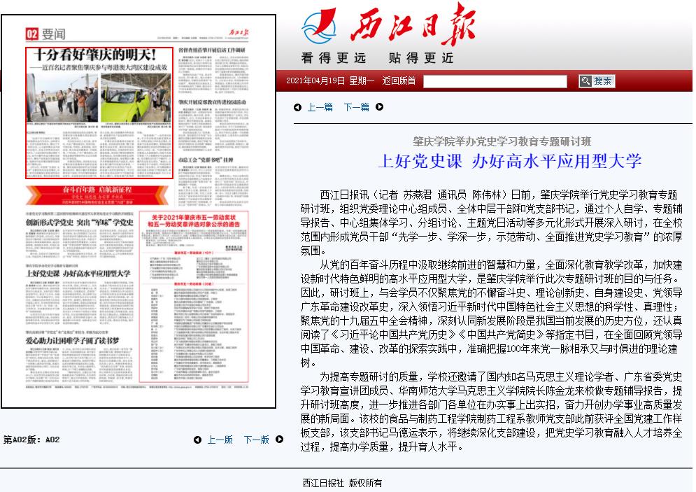 为提高专题研讨的质量,学校还邀请了国内知名马克思主义理论学者、广东省委党史学习教育宣讲团成员、华南师范大学马克思主义学院院长陈金龙来校做专题辅导报告,提升研讨班高度,进一步推进各部门各单位在办实事上出实招,奋力开创办学事业高质量发展的新局面。该校的食品与制药工程学院制药工程系教师党支部此前获评全国党建工作样板支部,该支部书记马德运表示,将继续深化支部建设,把党史学习教育融入人才培养全过程,提高办学质量,提升育人水平。