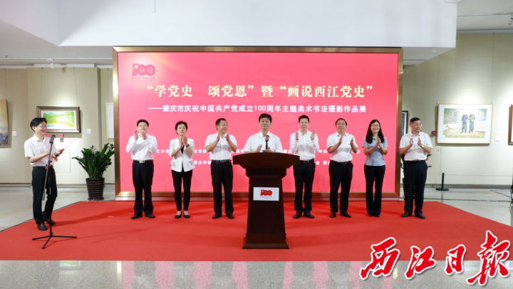 6月24日,“学党史、颂党恩”暨“画说西江党史”——肇庆市庆祝中国共产党成立100周年主题美术书法摄影作品展在肇庆美术馆开幕,以艺术作品展览的形式回顾党的光辉历程、讴歌党的丰功伟绩、述说西江党史,表达肇庆人民爱党爱国的情感,教育全市广大党员干部和青少年发扬红色传统、传承红色基因、赓续共产党人精神血脉,激励全市上下学党史、悟思想、办实事、开新局。