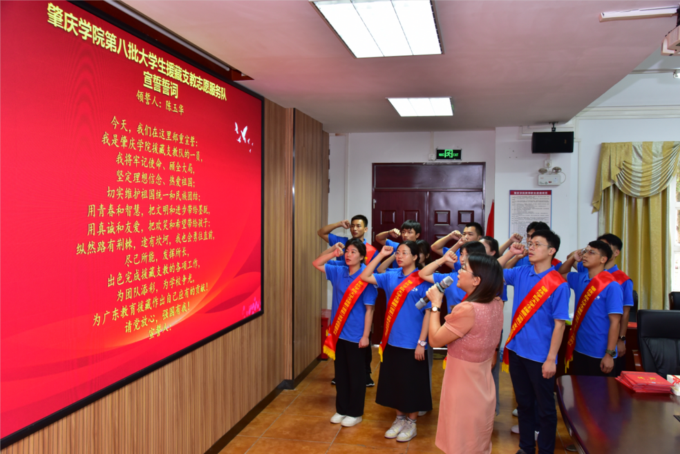 8月5日,在庄严而热烈的援藏支教出征仪式上,我校第八批大学生援藏支教服务队的14名师生作出郑重承诺。