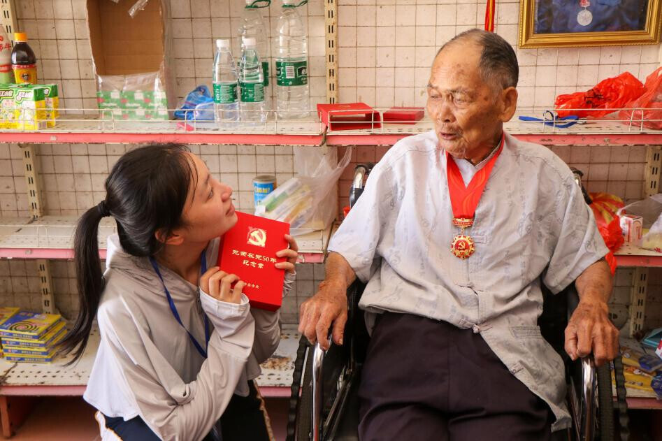 图为慰问老党员 中国青年网通讯员 钟艾青摄