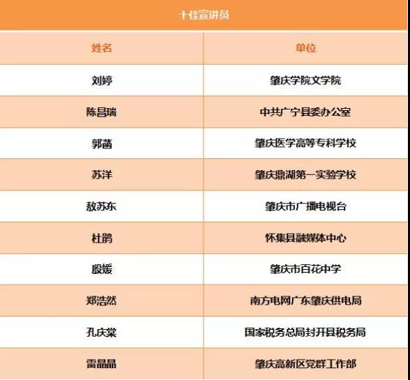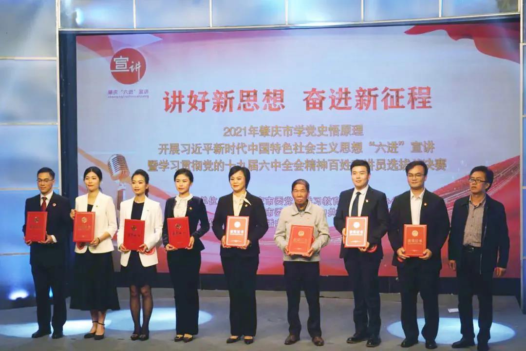 近日,肇庆市举办以“讲好新思想 奋进新征程”为主题“六进”优秀宣讲员选拔赛总决赛,评选出十佳宣讲员和优秀宣讲员。