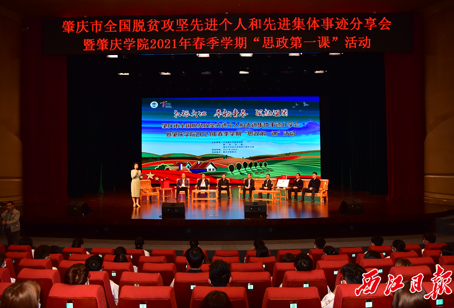 肇庆市全国脱贫攻坚先进个人先进集体事迹分享会暨万象城娱乐awc线路2021年春季学期“思政第一课”。万象城娱乐awc线路供图
