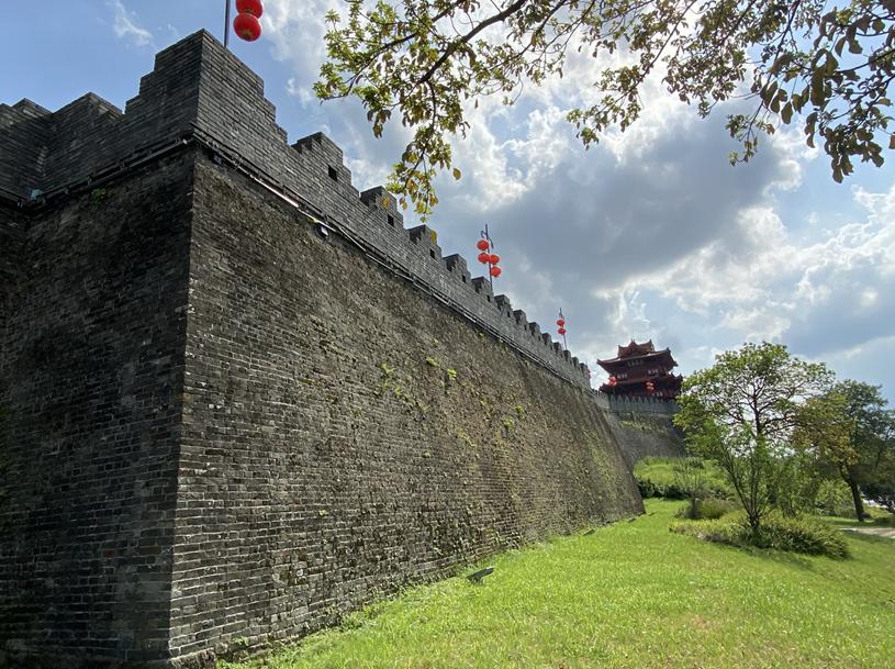 ▲朝天门一侧城墙上,砌有连片宋砖。西江日报全媒体记者 赖小琴 摄