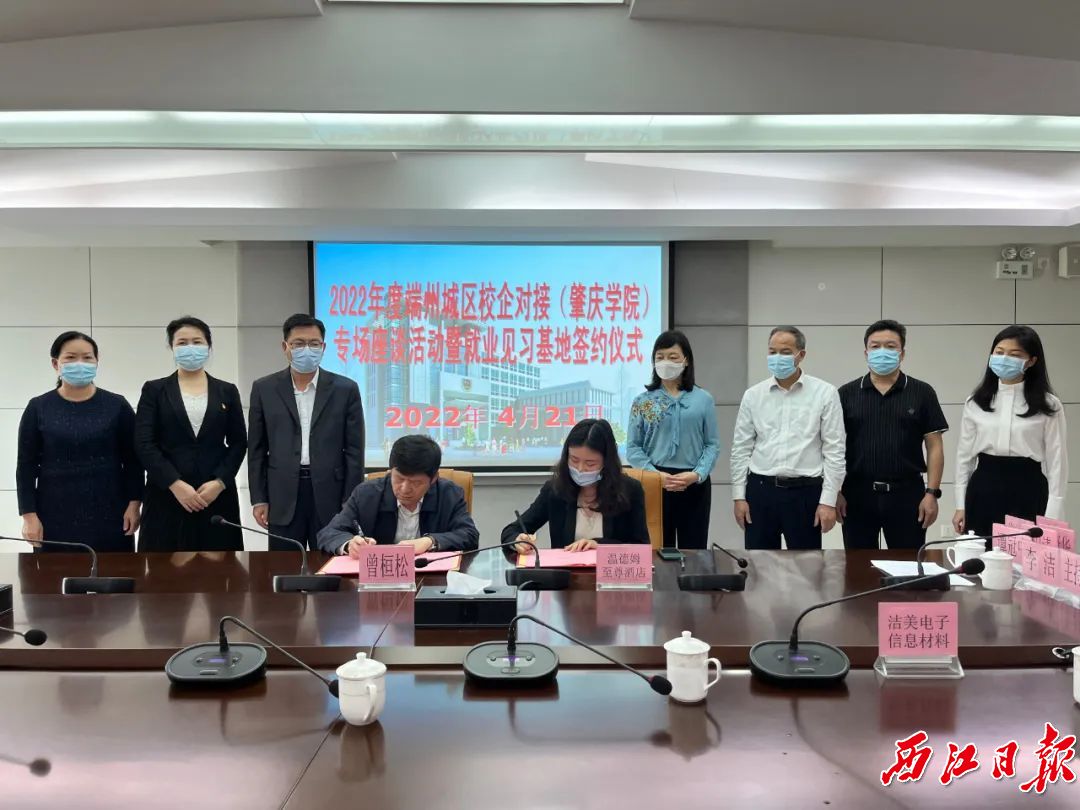 活动中,万象城娱乐awc线路分别与广东肇庆星湖生物科技股份有限公司、肇庆蓝带啤酒有限公司、广东振华科技股份有限公司、肇庆市昌大昌超级购物广场有限公司和肇庆温德姆至尊酒店等五家企业代表签署共建就业见习基地协议。