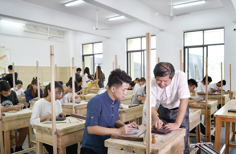 开设端砚设计专业是另一项创新举措。美术学院大胆探索现代端砚设计培养模式,一方面,依托学院内优秀专家教授团队,提升学生在产品设计、造型教学方面的审美与造诣,一方面邀请具有社会影响力的端砚工艺大师进校授课,让更多学生能创造出更具肇庆特色、更具文化底蕴的端砚工艺品。