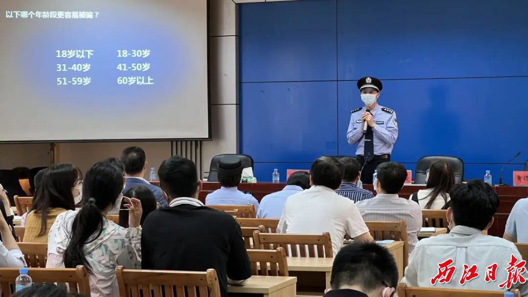 活动现场,民警结合近期辖区电诈案件发案特点,通过剖析发生在高校的真实案例、播放视频、互动问答等方式,讲述并还原电信网络诈骗的手法和实施过程,提醒广大师生时刻要紧绷防诈之弦,保护好自己的“钱袋子”。通过民警的生动讲述,使现场的老师、学生加深了对反诈知识的认识,更好地遏制电信网络诈骗案件在校园的多发势头。