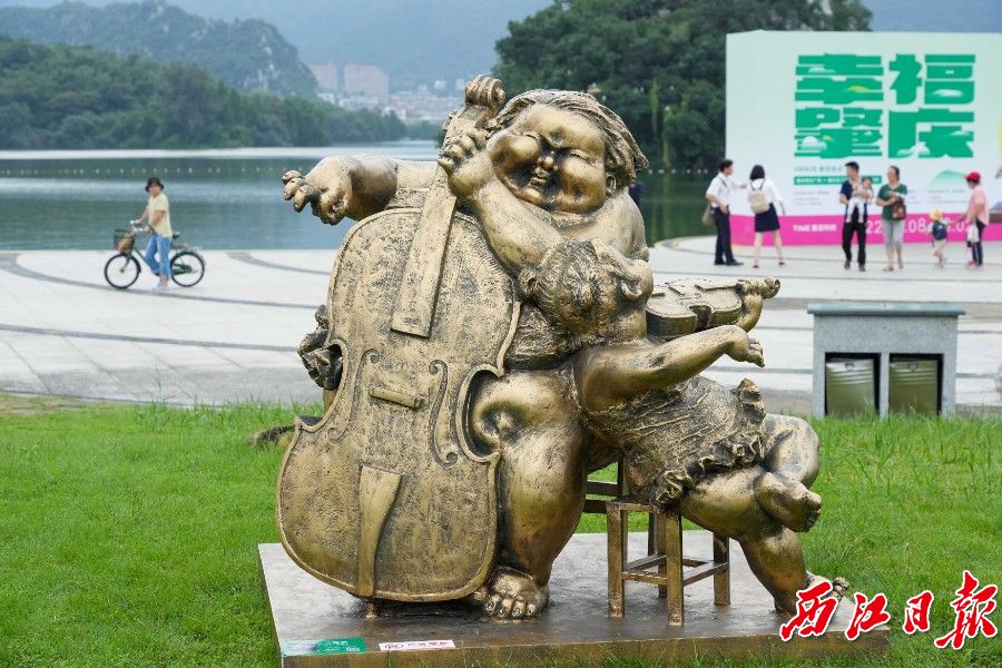 艺术与自然相映成趣,记者在现场看到,这些雕塑作品星湖畔格外引人注目,在蓝天白云、青山绿水的映衬下,肥女雕塑以自信和快乐的姿态把艺术的美和欢乐带给大家,快乐、质朴的艺术感染力让市民融于其中,不少人模仿雕塑动作、表情,摆出造型和雕塑欢乐合影。