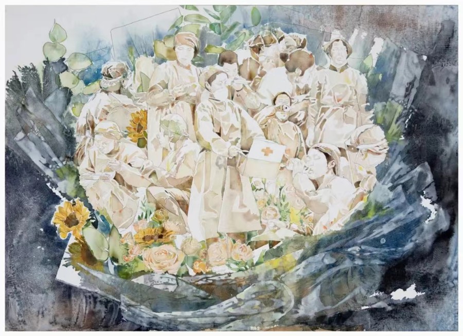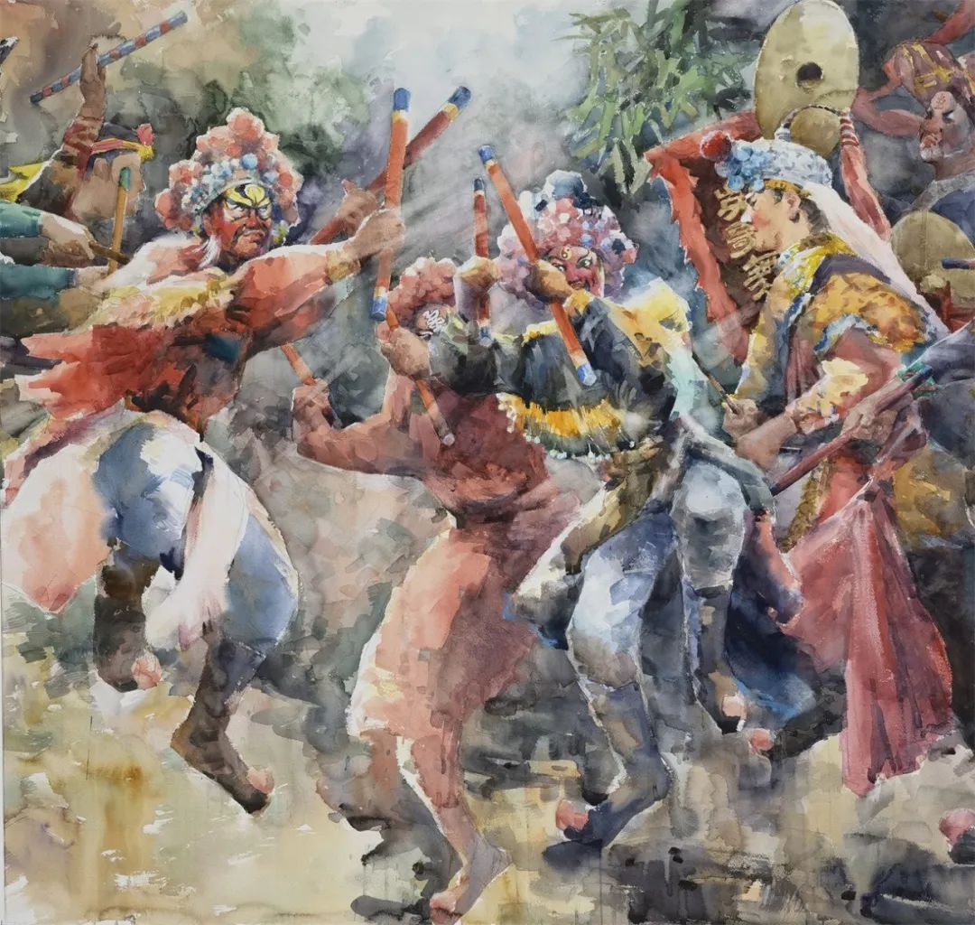 《毅勇奋进新时代》(纸本水彩)肖汝恩