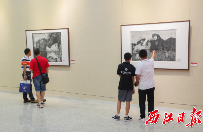 市民欣赏版画作品。 西江日报记者 曹笑 摄
