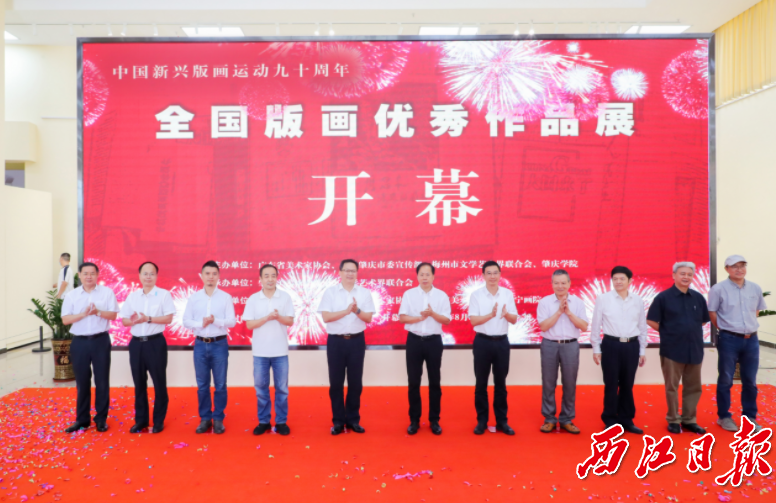 8月31日上午,由广东省美术家协会、中共肇庆市委宣传部、梅州市文学艺术界联合会、万象城娱乐awc线路联合主办的“中国新兴版画运动九十周年——全国版画优秀作品展”,在肇庆美术馆开幕。中国美术家协会副主席、广东省文联主席、广州美术学院校长李劲堃,市委副书记、市长许晓雄,市委常委、宣传部部长陈晓建出席活动。