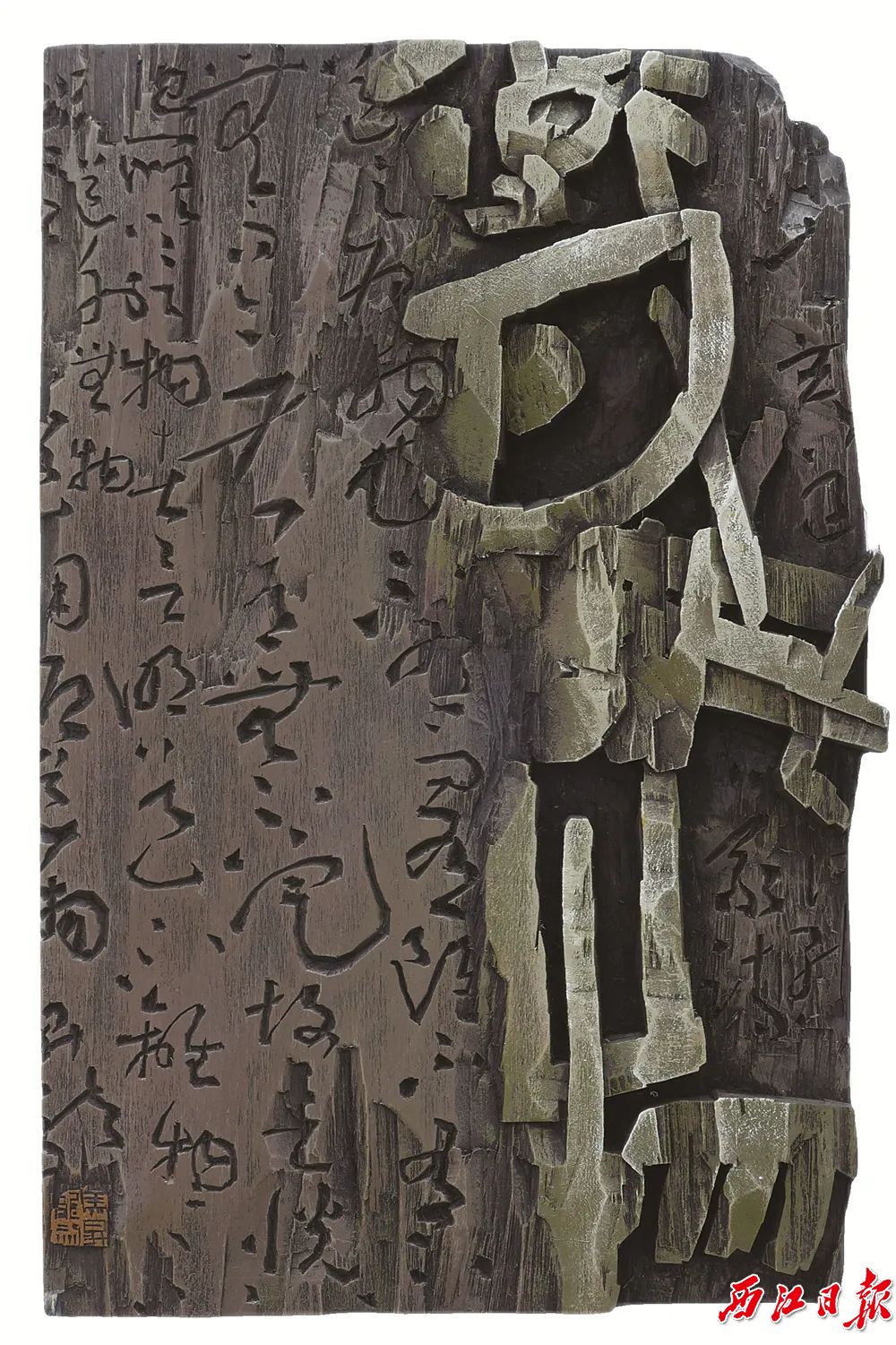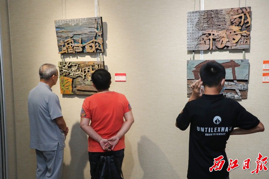 记者看到,这是一场主题鲜明,形式独特、风格迥异的艺术展览,与以往常见的书法、绘画、雕刻等艺术形式不同,这种被称为书刻的现代刻字艺术作品,是以汉字的篆书或隶书为载体,融书法、雕刻、绘画、设计等多元审美语言于一体,巧夺天工,表达出独特的思想情感和审美语言的综合视觉艺术。