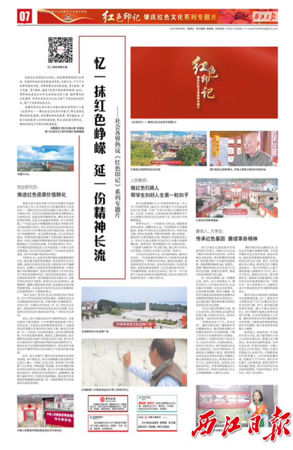 由肇庆市文化馆与西江日报社联合制作的十二集《红色印记——肇庆红色文化系列专题片》带大家重走肇庆的红色道路,重温肇庆的红色故事。影片播出后,引起了社会各界人士的观看热潮,观众在收看完影片后,都纷纷畅谈了对影片的观看感受。