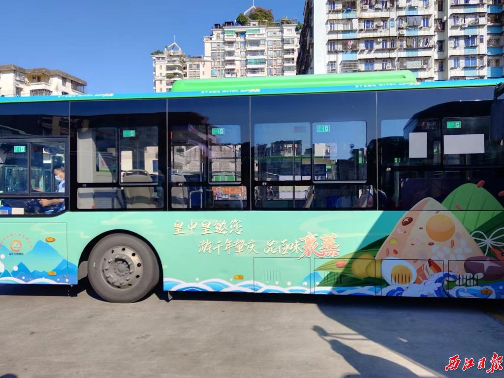 这次在7条线路上的公交巴士上推送肇庆裹蒸美食公益宣传,每条线路有1辆公交车,车身上喷有显眼的“游千年肇庆 品百味裹蒸”绿色字样及其相关的宣传图片。同时,车内将滚动展播“游千年肇庆 品百味裹蒸”的视频、图文等公益宣传资料。据统计,这些公交巴士每天运行总里程1300多公里。