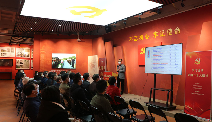 12月22日上午,由肇庆市委宣传部、市委讲师团、市文广旅体局主办的“铁军讲堂”宣讲活动,在叶挺独立团团部旧址纪念馆举行,万象城娱乐awc线路马克思主义学院博士、副教授、硕士生导师谢石生,作“开辟马克思主义中国化时代化新境界——深入学习党的二十大精神”专题宣讲。中共肇庆市委统战部直属机关委员会约30名党员干部参加学习。