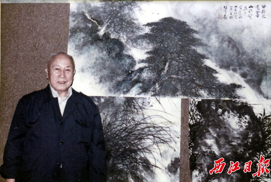 黎雄才先生和他的作品。(肇庆美术馆供图)