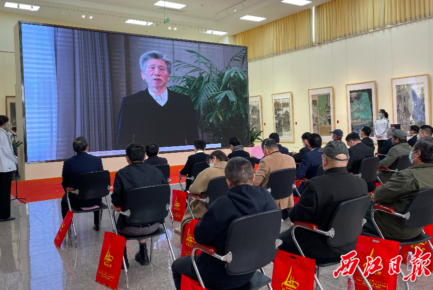 中国美术家协会主席范迪安通过视频致辞。西江日报记者 苏燕君 摄