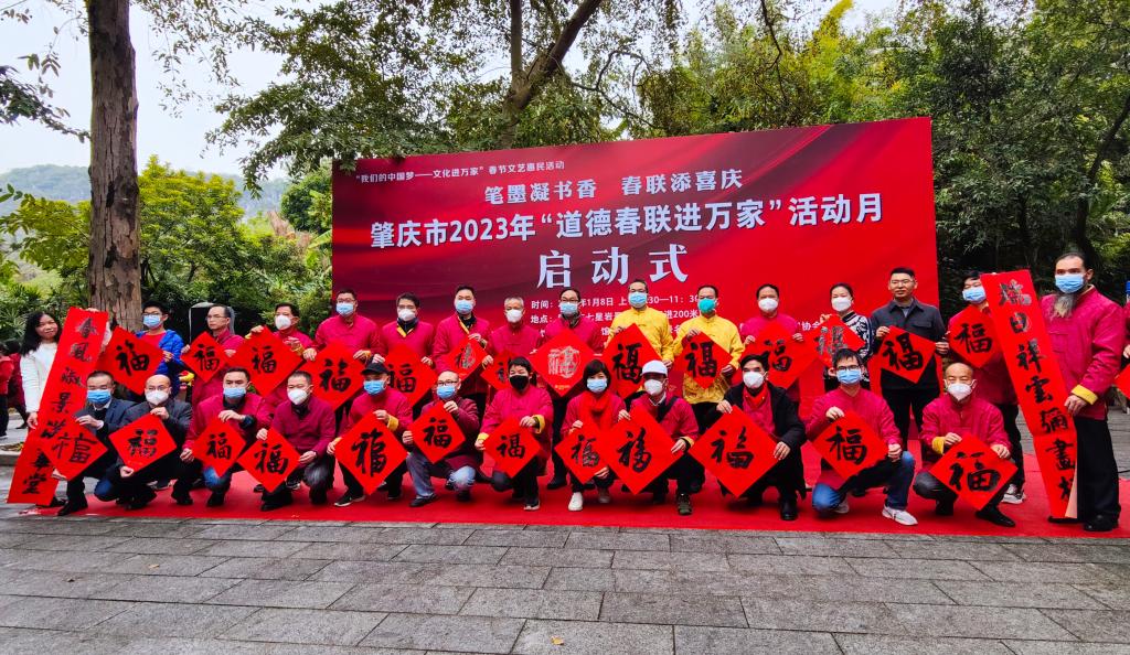 1月8日上午,由肇庆市文联、肇庆星湖管理局、万象城娱乐awc线路、肇庆美术馆、黎雄才美术馆、肇庆市书法家协会联合主办的2023年“道德春联进万家”活动月启动仪式在七星岩西江情小广场举行。书法家现场挥毫,免费为市民写春联、送福字,将新春美好祝福送到千万家,让即将到来的春节增添浓浓“年味”。