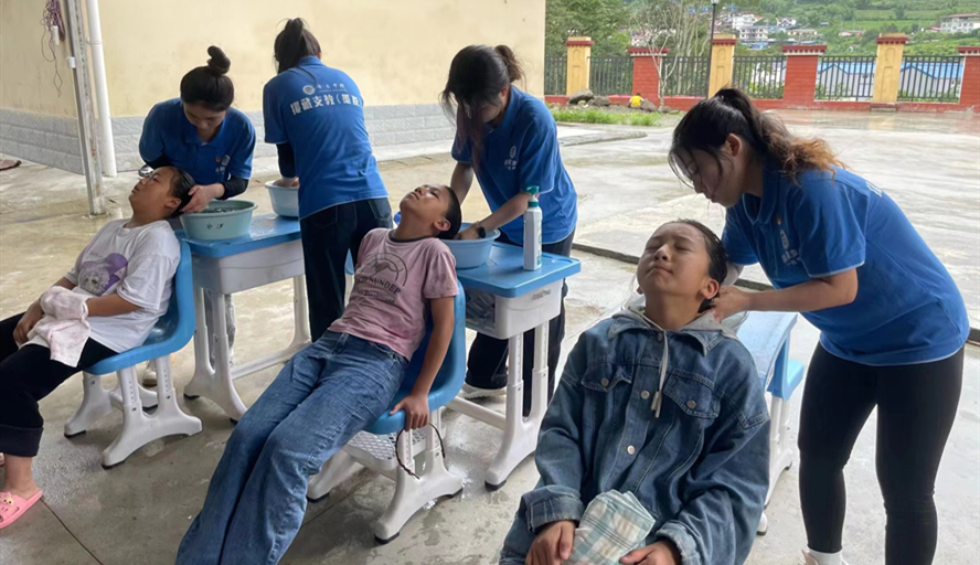 支教工作之余,今年暑假期间,服务队开启了以“石榴花开籽籽同心,援藏支教粤藏一家亲”为主题的大学生暑期“三下乡”社会实践活动,开展了“齐走巡边路”主题教育,为达木珞巴民族乡小学送福利、为孩子们洗头、梳头、洗手、修剪指甲以及助力“格林茶旅企业”志愿服务。