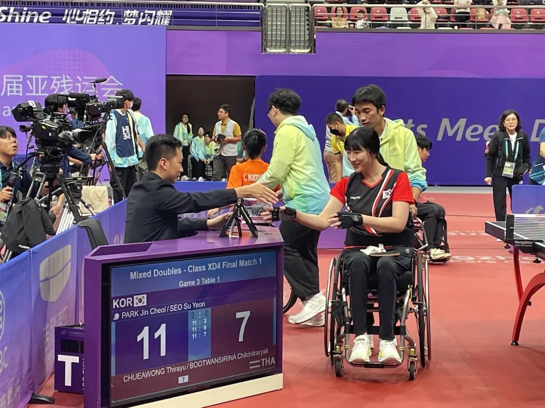 2023年5月,一条“意外”短信让杨博老师瞬间感到惊喜。“受2022年第19届亚运会拱墅运河体育公园体育运行团队邀请,中国残联委派担任第4届亚残会乒乓球项目国内技术官员”,短信内容简短,信息量却十分庞大。杨博看着短信有些许的错愕,待到缓过神已被“去亚残运会当技术官员”的兴奋与喜悦包围。