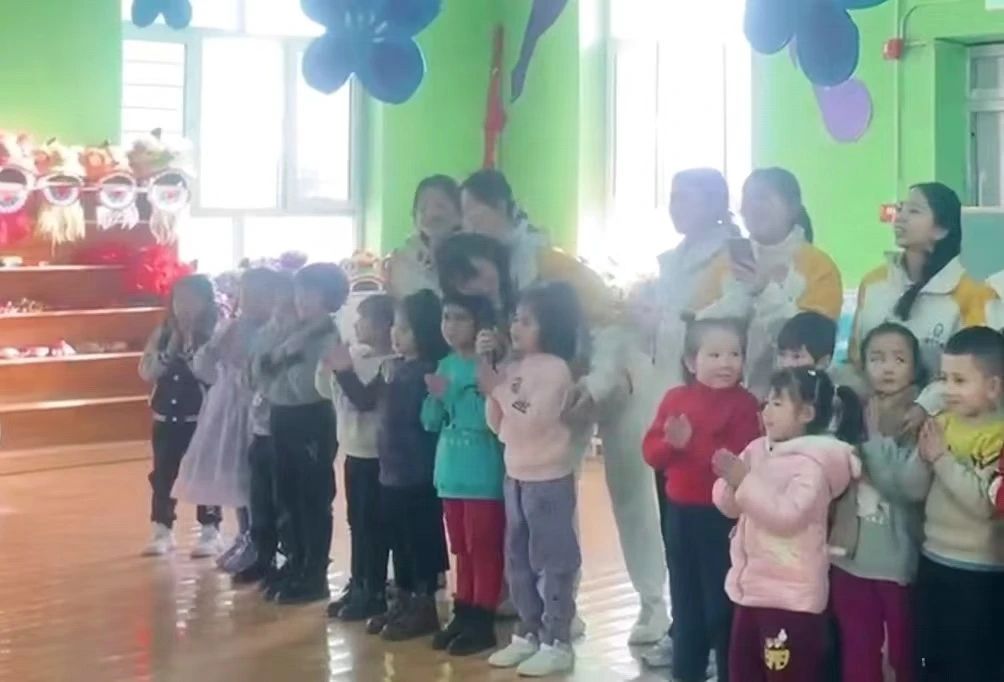 2023年12月29日下午的音乐会尾声,支教队员合唱《再见》和《真的爱你》,以此告别在疏附县中心幼儿园的帧帧幕幕。伴着歌声,我不舍地望向观众席,我知道大五班的小朋友在看我,于是乎我的手臂不自觉地抬了起来......“大五班的小朋友快来!老师想与你们一起唱!”我挥着手请他们站在我身边,他们小心而激动地给我们打着节拍,我鼓励他们可以放松一点,老师在呢。