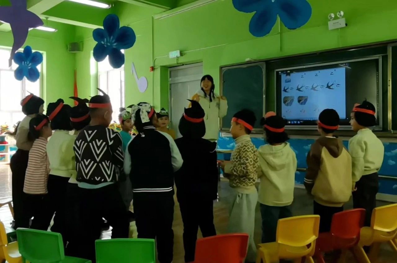 我组织策划了丰富多样的音乐教育活动,让他们在《小老鼠上灯台》中感受接唱和齐唱的魅力;在《弟子规》表演唱中感受鲜活的国学启蒙;在音乐游戏《开锁》中体验合作的乐趣;在打击乐合奏《春晓》中感受“各司其职,共创辉煌”的奇妙……