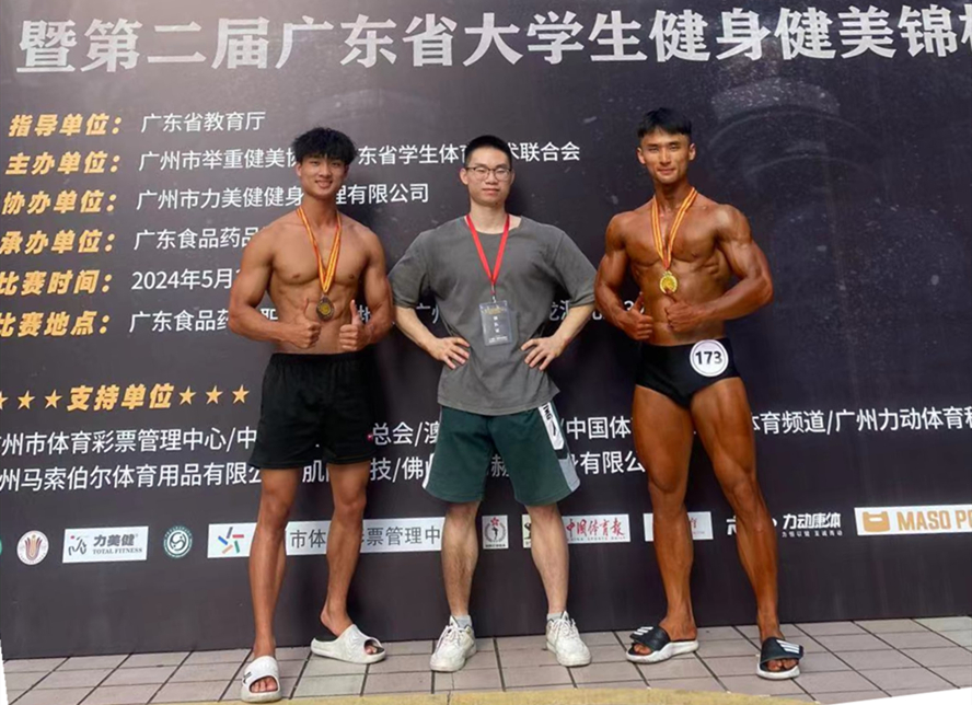 本网讯 6月1日—2日,由广东省教育厅指导、广州市举重健美协会与广东省学生体育艺术联合会主办的2024年“力美健”杯第44届广州健身健美锦标赛暨第二届广东省大学生健身健美锦标赛于广东食品药品职业学院举办。来自体育与健康学院2021级体育教育专业的学生龙艺谦、黄益坤参加了多个组别的较量。最终,龙艺谦摘得高校组男子古典健美171cm以下组第一名、高校组传统健美70kg组第二名,黄益坤荣获高校组男子健体A组第九名。