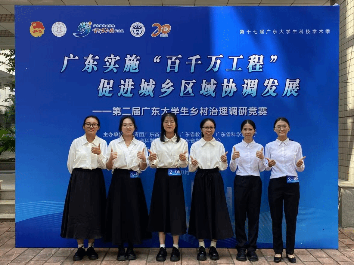 在决赛现场,马克思主义学院易明副教授指导、罗栩老师带队、22级思政2班谭景恩、郑晓婷、林忠连、张钰瑶、胡晨、胡燕六名同学以团队合作撰写的《红色文化赋能乡村振兴的现实表征与建设路径探赜》调研报告参赛。本团队在学院老师的悉心指导下,深入革命老区——肇庆市广宁县江美村,通过实地考察与数据分析,尝试将江美村传承与发展红色文化的建设路径作为新时代乡村红色文化赋能乡村振兴的有益参考,旨在为乡村振兴注入源源不断的红色动能。通过现场激烈的答辩角逐,该团队的调研报告最终获得省级二等奖。