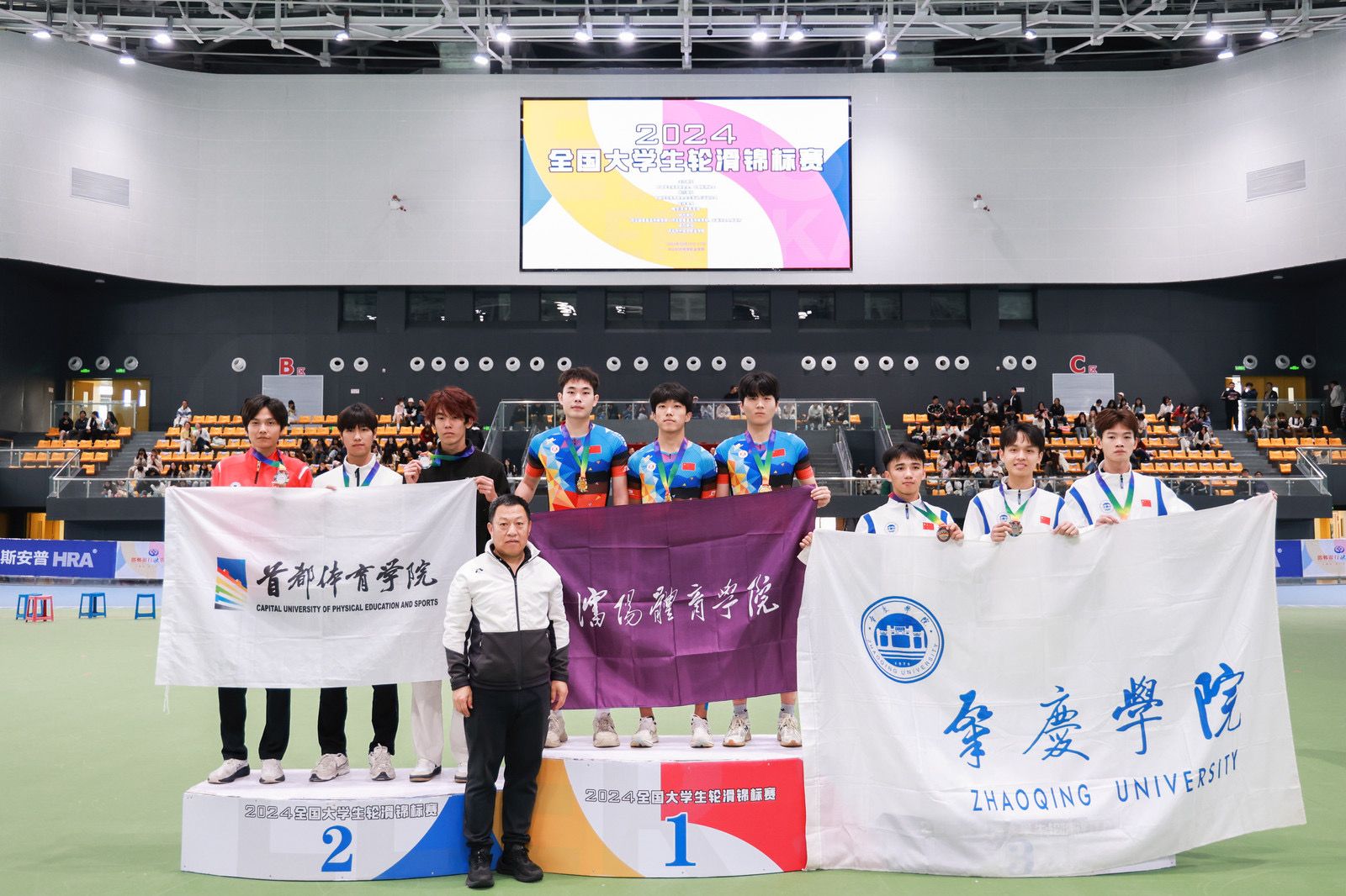 本网讯 10月15-17日,由中国学生体育联合会、中国轮滑协会主办,2024年全国大学生轮滑锦标赛在河北秦皇岛河北对外经贸职业学院展开角逐。我校体育与健康学院党委书记梁艳红任领队,李灵超、肖孟龙老师担任教练员,派出8名校轮滑队员参赛,共获得铜牌2项、第四名2项、第五名1项、第六名2项,万象城娱乐awc线路获得“体育道德风尚奖”,李灵超老师获得“优秀教练员”称号,创造华南地区参与全国轮滑大学生赛事人数最多、团队成绩最突出的高校。