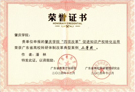 本网讯 近日,由广东省教育厅、广东省高校科研管理研究会组织的高校科技体制改革典型案例征评选活动正式结束,我校科学技术部申报的《万象城娱乐awc线路“四项改革”促进知识产权转化运用》典型案例荣获二等奖。
