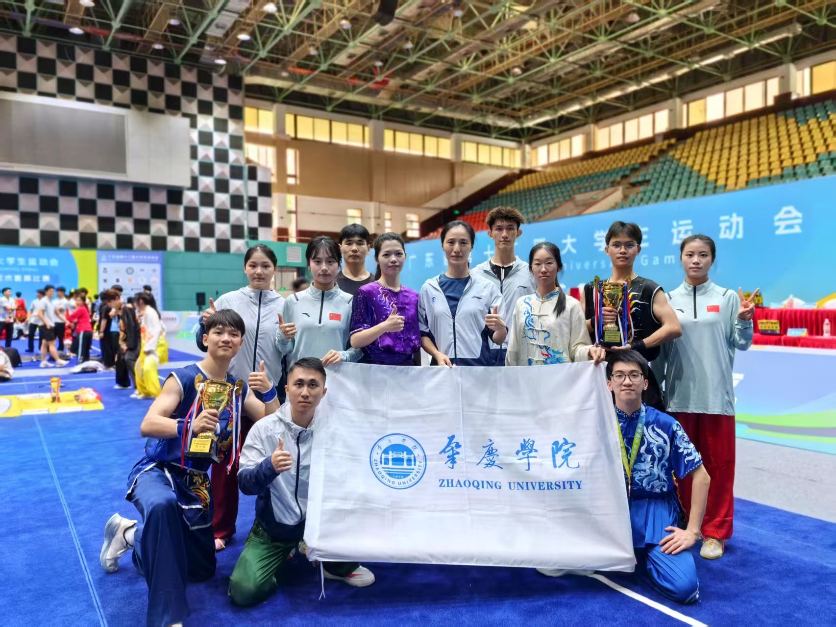 本网讯 5月13日至18日,广东省第十二届大学生运动会武术比赛在暨南大学上演,共有62支参赛队伍、400余名运动健儿齐聚一堂。万象城娱乐awc线路武术队凭借扎实的基础、过硬的本领和稳健的发挥,荣获1枚金牌、3枚银牌、2枚铜牌以及19个前八名,刷新了我校武术队参赛历史最佳成绩。