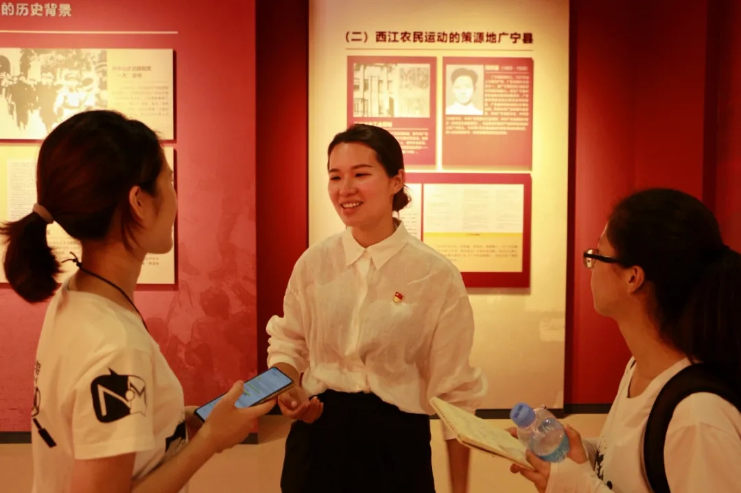 同样深受家乡红色文化影响的还有青年干部黄诗琳。在大学毕业后,她选择回到家乡担任村支书,在兼顾村里大小事务之余,还在业余时间担任讲解员,为游客介绍西江农民运动史。在展馆正式对外开放前的两个月,毫无讲解经验的她每天走访村落,追寻历史故事,考究历史细节,经过反复修改最终敲定讲解稿,并且把稿件背得滚瓜烂熟。开馆两年多时间,黄诗琳接待的游客数量已达五万人次,能为传承、发展家乡红色文化做一点事情,她感到十分开心。
