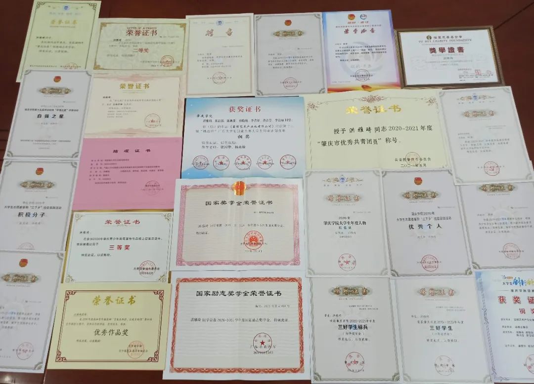 ▲ 洪雅琦大学期间获得的奖状、证书