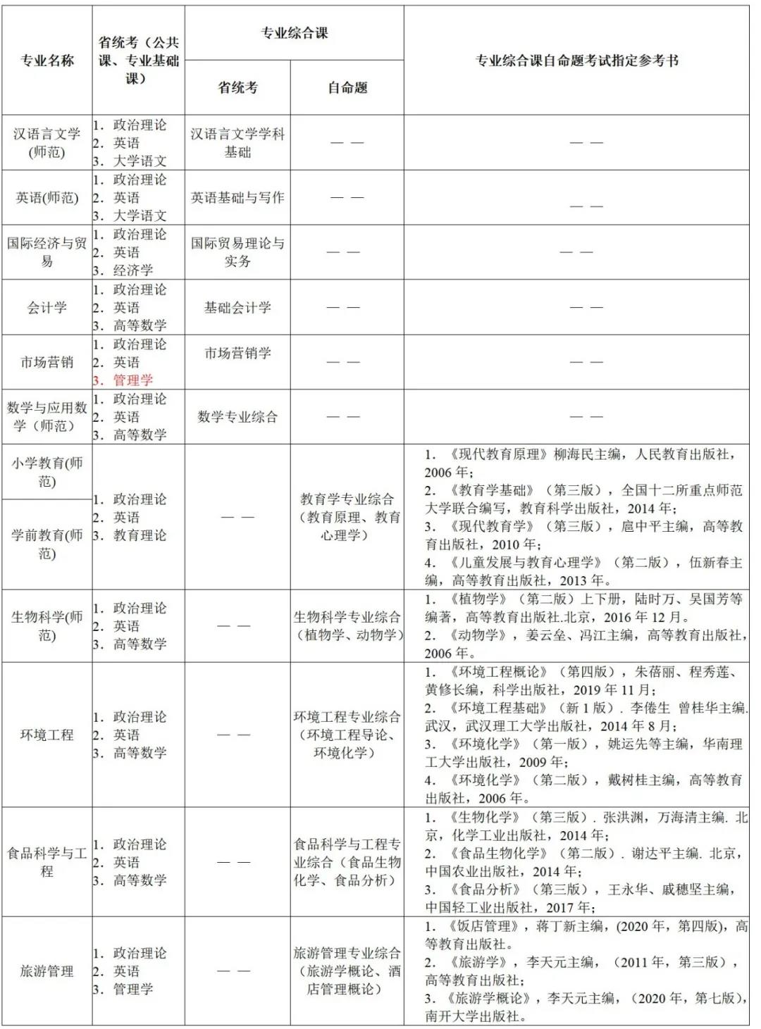 省统考科目的考试要求和考试范围由省教育考试院根据教育部专科升本科同一层次的要求编写确定,并于报名前向社会公布。我校自命题考试科目、指定参考书和考试要求(登陆招生办网站https://zsb.zqu.edu.cn/info/1011/2078.htm下载)等由我校根据专科升本科同一层次的要求编写,院校专业组招生代码以招生专业目录公布的为准。