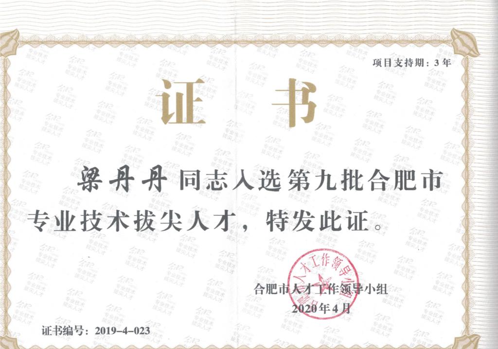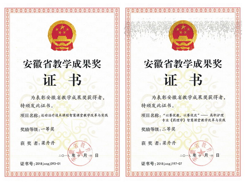 安徽省教学成果奖及合肥市拔尖人才证书